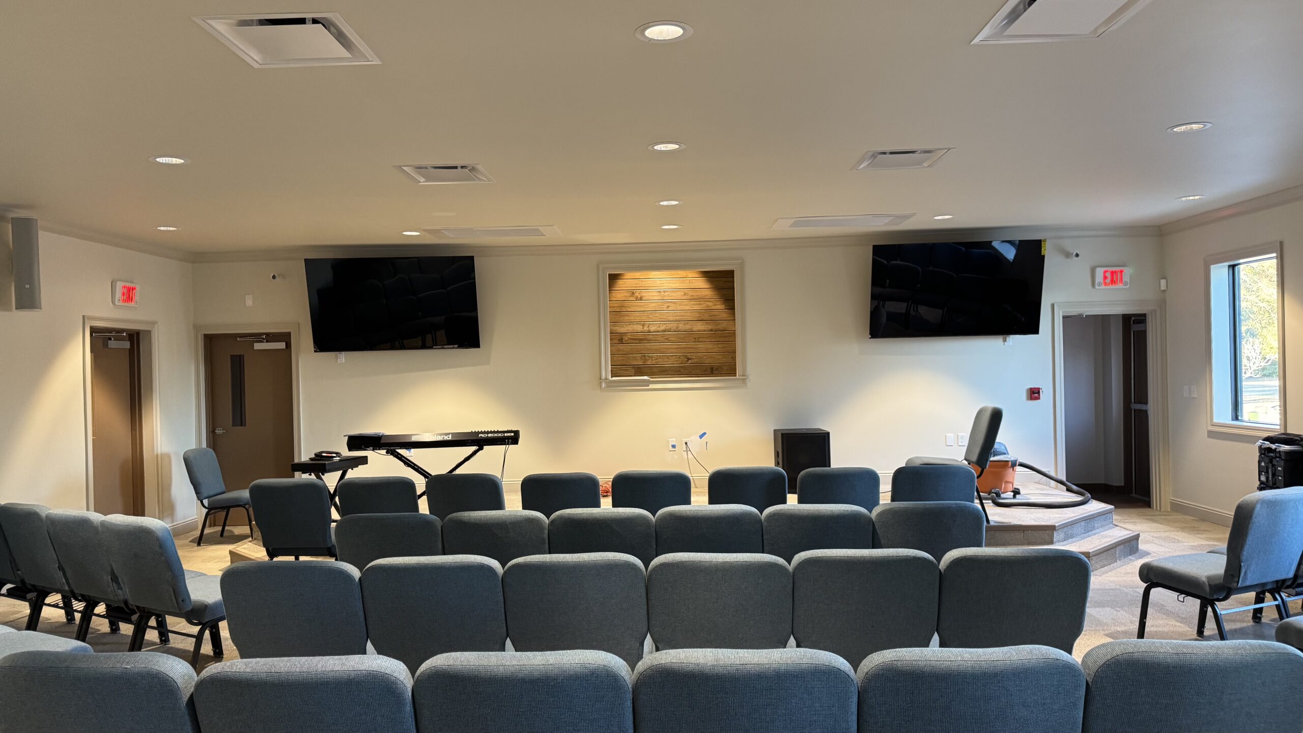 - A modern worship environment with professional AV capabilities
